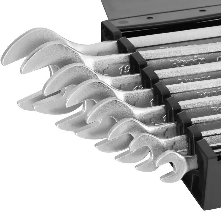 ست آچار دو سر تخت رونیکس تحت عنوان کد محصول RH-2201 ، دارای 8 عدد آچار از جنس آلیاژ کروم وانادیوم است که برای ضد خط و خش بودن، به صورت کاملا با کیفیت، با کروم آبکاری شده و نیز، برای افزایش دوام و ارتقای خواص مکانیکی، تحت عملیات حرارتی و سختکاری قرار گرفته است. این مجموعه دارای بدنه آنتی اسکید است تا از سر خوردن دست کاربر در حین فعالیت، جلوگیری کند. این ست آچار دو سر تخت که مطابق با استاندارد DIN 3110 و بر حسب استاندارد متریک تولید شدهاست، مجموعا 886 گرم وزن داشته و در بسته بندی طراحی شده توسط رونیک