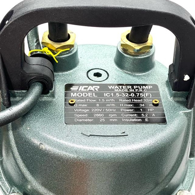 پمپ کف کش ایکار مدل IC1.5-32-0.75F جهت استفاده در آبیاری درختان و تخلیه آب چاه و استخر در همه مکان ها میباشد این کالا کاملا ضد آب بوده و دارای سیم پیچ میباشد برق مورد استفادی برای پمپ تکفاز 220 ولت 5 آمپر میباشد.