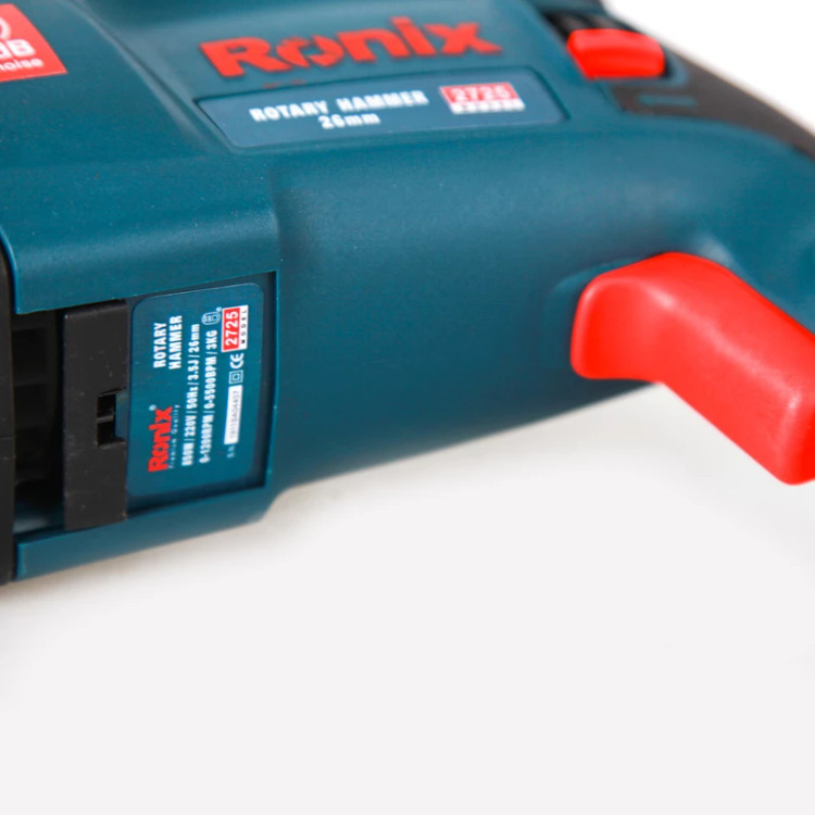 دریل بتنکن رونیکس 2725 بههمراه مجموعهای از لوازم جانبی کاربردی ارائه میشود که کاربر را از تهیه لوازم جانبی مجزا بینیاز میکند. یک عدد کیف BMC مقاوم در برابر ضربه بهعنوان محفظه اصلی حمل دستگاه طراحی شده است که تمامی اقلام را بهصورت منظم و ایمن در خود جای میدهد. در بستهبندی محصول، دسته کمکی، خطکش تنظیم عمق، دفترچه راهنما و یک جفت زغال یدک بههمراه چهار عدد مته چهار شیار با سایزهای ۷x۱۵۰، ۸x۱۵۰، ۱۰x۱۵۰ و ۱۲x۲۰۰ میلیمتر وجود دارد. این متهها با قلمگیر چهار شیار دستگاه هماهنگ بوده و برای کار روی مصالح مختلف کاملاً مناسب هستند. وجود زغال یدک، نشاندهندهی توجه برند به نگهداری طولانیمدت دستگاه و کارکرد مستمر آن است.