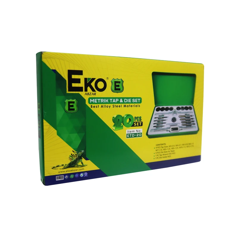 جعبه قلاویز و حدیده 20 پارچه اکو EKO ETD-20 یک ابزار ضروری برای هر کارگاه یا کارخانه است، قلَاویز و حَدیده ابزاری برای تراش دندههای پیچ بر روی موادی مانند فلز، چوب و پلاستیک است.این مجموعه با کیفیت بالا، تنوع بالا و قیمت مناسب، انتخابی ایدهآل برای انجام عملیات قلاویزکاری و حدیدهکاری است