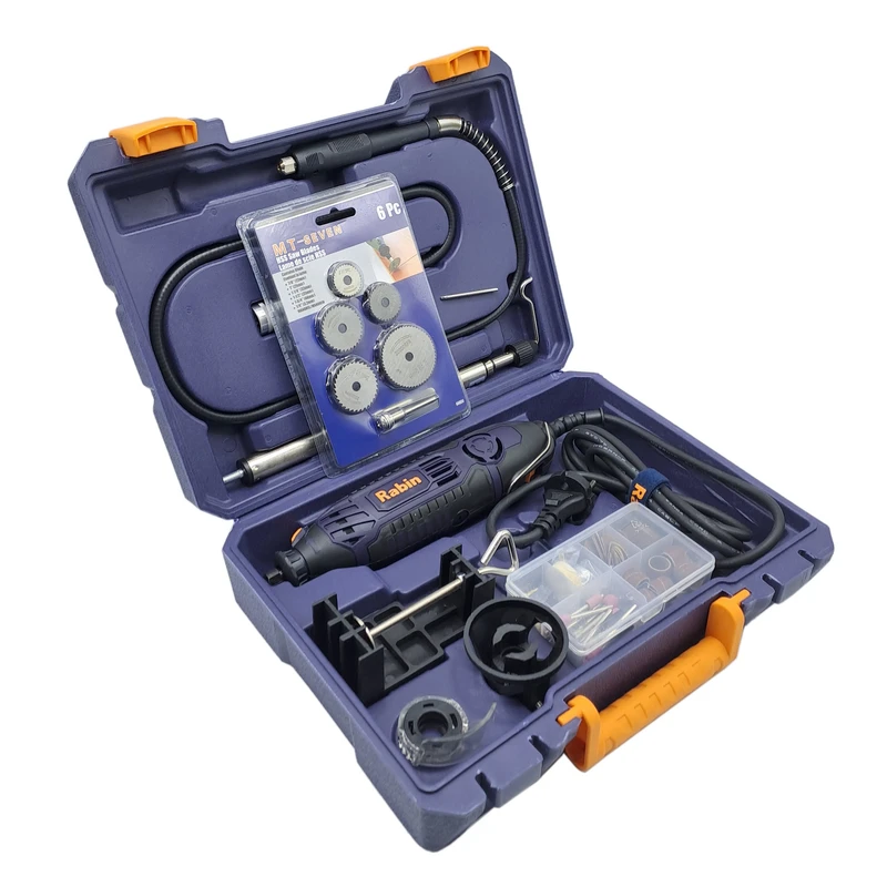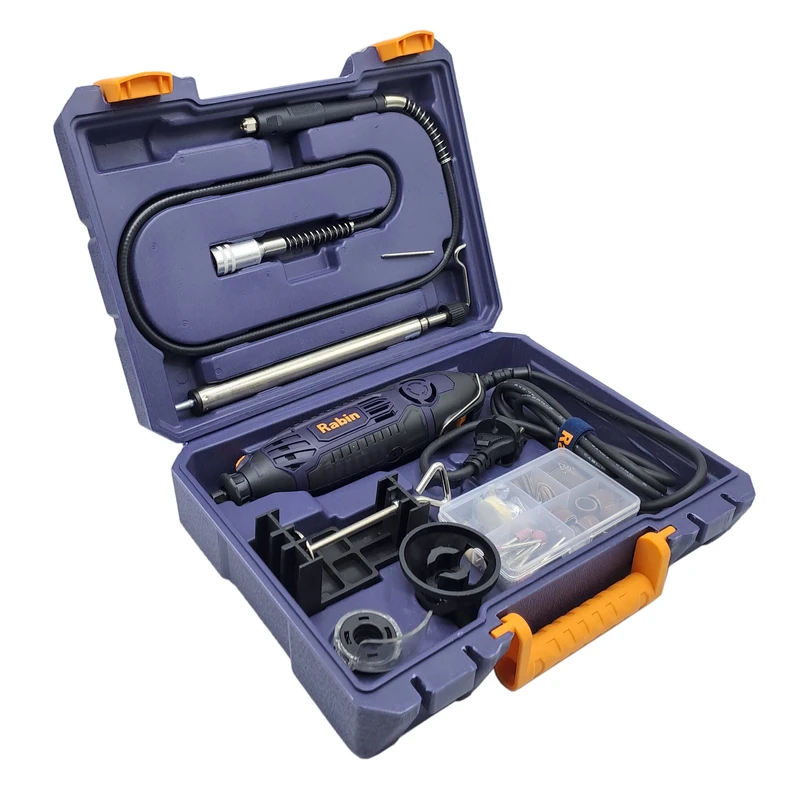 فرز انگشتی 200 پارچه رابین « R3120» یکی از مدلهای با کیفیت و کارآمد تولید شده توسط شرکت رابین است. این مدل بسیار با دوام و با کیفیت و البته خوش دست طراحی شده تا بتوانید از آن سالیان طولانی استفاده کنید. خوش دست بودن دستگاه فرز انگشتی رابین موجب شده تا در استفادههای طولانی مدت، اصلا احساس خستگی نکنید. فرز انگشتی رابین با قطعات مختلف و متنوعی همراه شدهاند که همگی بسیار منظم و مرتب در جعبه قرار میگیرند. پس از استفاده از فرز انگشتی میتوانید تمامی قطعات را در جعبه قرار دهید تا از گم شدن آنها جلوگیری شود. فرز رابین با موتور 200 واتی و قابلیت تنظیم سرعت تولید شده است. با وجود این موتور خوب و البته قطعات همراه فرز میتوانید انواع کارهای مختلف را با فرز انگشتی رابین انجام دهید. با استفاده از این فرز میتوانید کار فرز کاری، ساب زنی، حکاکی و ... را بر روی متریالهای مختلفی از جمله سنگ، فلز، پلاستیک، چوب و ... انجام دهید.