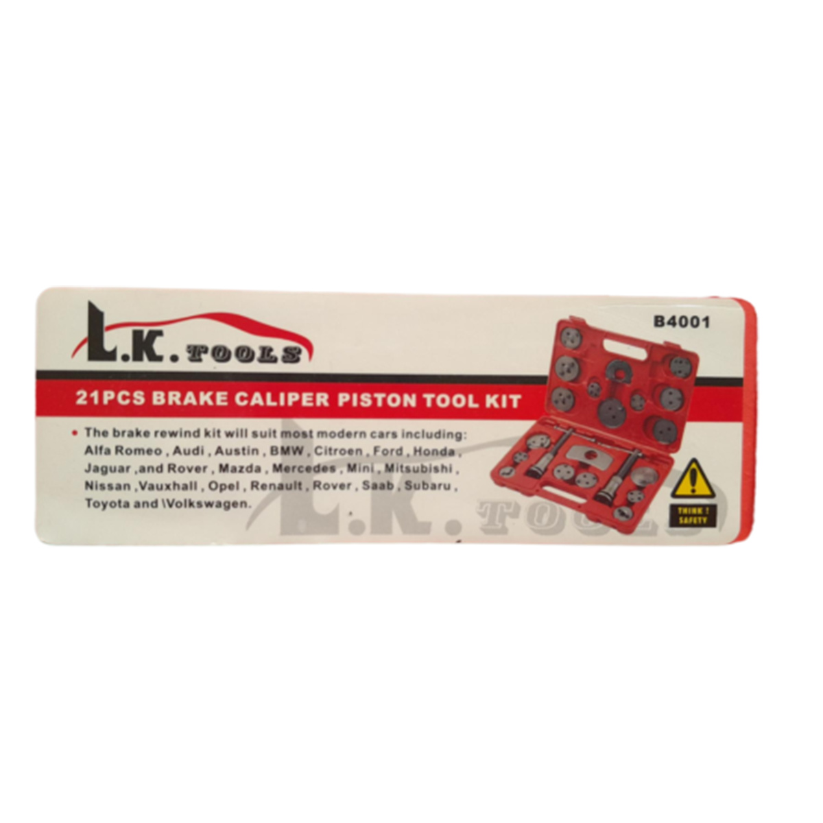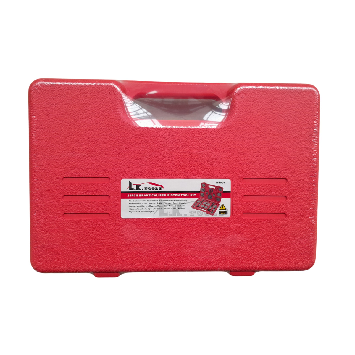 کالیپر سیلندر ترمز دستی LK مدل B4001 یک ابزار تخصصی و چندمنظوره است که با طراحی ۲۱ پارچه خود، برای نصب و جداسازی راحت و دقیق سیلندر ترمز ، مناسب خودرو های آئودی ، بی ام و ، آلفا رومئو ، هوندا ، فورد ، مرسدس بنز ، نیسان ، رنو ، اوپل ، تویوتا و … طراحی شده است.