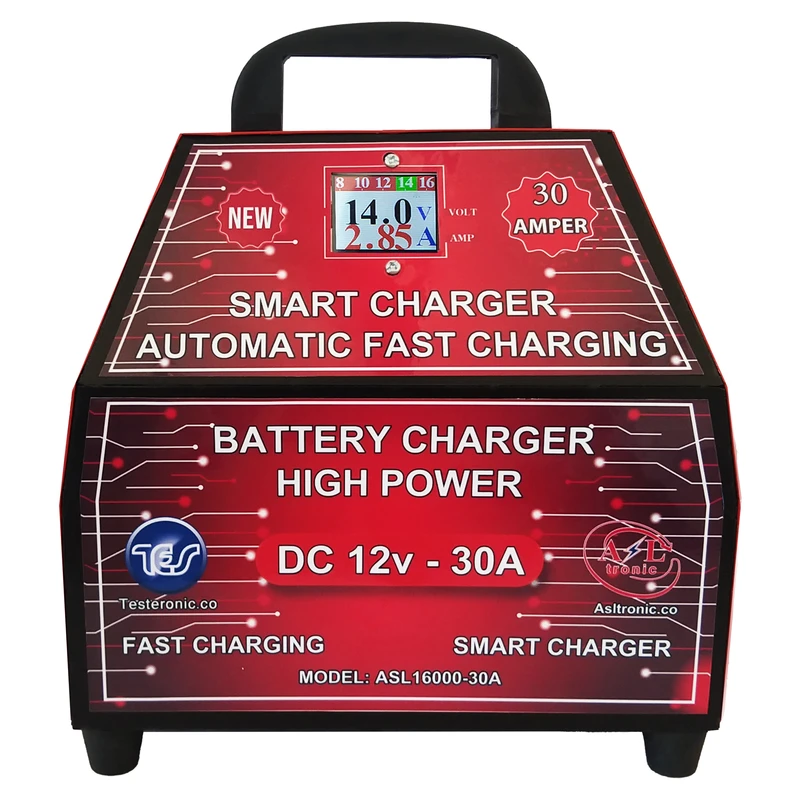 شارژر سریع و اتوماتیک انواع باتری های خودرویی، موتوری و یو پی اس. این شارژر با استفاده از آخرین تکنولوژی سوئیچینگ روز دنیا جریان شارژ باتری را متناسب با ظرفیت و میزان شارژ اولیه ی باتری مشخص می کند. جریان شارژ رفته رفته با توجه وضعیت باتری کاهش داده شده و سرانجام پس از شارژ کامل جریان شارژ به محدوده صفر خواهد شد. این شارژر دارای نمایشگر LCD ولتاژ و جریان باتری در حال شارژ بوده و لحظه به لحظه مقادیر ولتاژ باتری را را به صورت نموداری ثبت می کند. سر انجام با فول شارژ شدن باتری ولتاژ به حداکثر یعنی حدود 14.7 تا 14.9 می رسد. و جریان شارژ به حداقل یا صفر می رسد. این شارژر بالاترین محافظت را برای شارژ مناسب و جلوگیری از آسیب به باتری دارد. برای شروع شارژ باتری کافیست برق دستگاه وصل شده و کلید شارژ روشن شود. با اتصال گیره های دستگاه به دو سر باتری وضعیت شارژ باتری برروی LCD دستگاه به صورت آمپر و ولتاژ مشخص شده است. در ابتدا نمایشگر آمپر روی دستگاه مقداری را نمایش می دهد که نشان دهنده خالی بودن باتری و جریان کشی آن است. با افزایش شارژ مقدار ولتاژ از مقدار اولیه نمایش داده شده بیشتر می شود اما مقدار جریان نمایش داده شده اولیه کاهش می یابد تا به صفر برسد. این شارژر جهت عملکرد بهتر دارای فن خنک کننده می باشد .