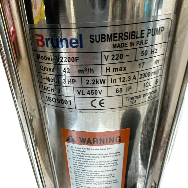 لجن کش برونل 20 متری 3اینچ فلوتر دارمدلV2200-F یکی از با کیفیت ترین لجن کش های موجود در بازار ایرن مناسب جهت تخلیه انواع چاه های فاضلاب و آب های گل آلود با قابلیت پمپاژ بالا این محصول دارای خروجی 3 اینچ به همراه فلوتر برقی می باشد بدنه این محصول از جنس استیل زد زنگ و پایه مکش از جنس چدن که در برخورد با جداره چاه دارای مقاومت بالایی باشد الکترو موتور این محصول 3 اسب بخار توان و سیم پیچی تمام مس دارد این محصول ساخت کشور چین می باشد.