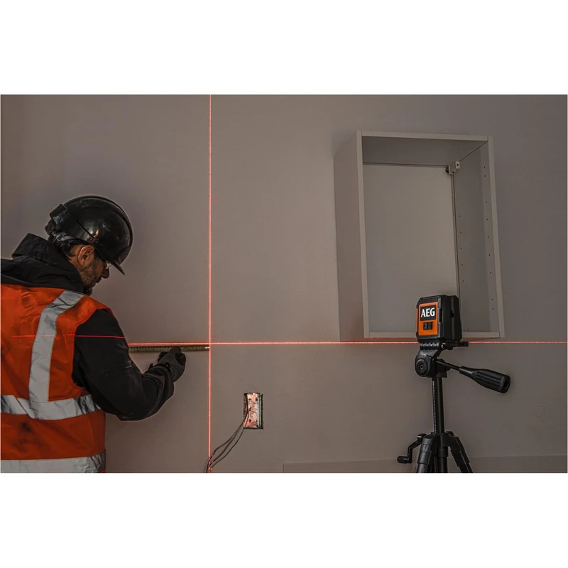 قلب تپندهی تراز لیزری آاگ CLR215-B ، خطوط لیزری دو خط قرمز رنگی را تا برد 15 متر (با توجه به شرایط نوری محیط) بر روی دیوارها، کف و سقف شما نمایش میدهد. لیزر قرمز رنگ این محصول طول موجی برابر با 635 نانومتر و از کلاس 2 است. از طرفی این محصول در دمای -20 تا 60 درجه سانتی گراد قابل کار است. اما راز اصلی کارایی و حرفهای بودن این محصول در قابلیتهای منحصربهفرد آن نهفته است: انتخاب خطوط لیزری: نمایش خط لیزر افقی، عمودی و یا هر دو به صورت همزمان را بر اساس نیاز خود انتخاب کنید. از طرفی به لطف قابلیت قفل پاندول آن به راحتی میتوانید در سطوح شیبدار یا حین جابهجایی از تراز لیزری AEG استفاده کنید. سیستم تراز خودکار: خطوط لیزر به صورت خودکار تراز شده و خطای انسانی را به حداقل میرسانند. محدوده خودتراز 3 درجه است و در 3 الی 5 ثانیه نیز انجام میشود. دقت اندازهگیری بالا: با دقت اندازهگیری 0.3± میلیمتر، خیال شما از صحت و اطمینان نتایج اندازهگیری راحت میشود. دیگر نگران اشتباهات ناشی از ترازهای دستی و اندازهگیریهای چشمی باشید. اتصال به سهپایه: رزوهی استاندارد یک چهارم اینچ امکان اتصال به انواع پایه را برای سهولت در کار بر روی سطوح غیر افقی فراهم میکند. برای اندازهگیریهای دقیقتر بر روی سطوح غیر افقی، تراز لیزری را بر روی پایه مگنت و آویز موجود در جعبه نصب کنید. بدنه مقاوم: تراز لیزری دو خط AEG مدل CLR215-B طبق استاندارد IP54 ساخته شده است تا در برابر نفوذ گرد و غبار و آب مقاوم باشد. از طرفی بدنه این محصول از پوششی مقاوم ساخته شده است تا از آسیبهای ناشی از افتادن جلوگیری کند.