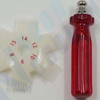 این شانه مخصوص صاف کردن فین های اِواپراتور و کندانسور می باشد. به این صورت که با قرار دادن شانه های این ابزار بین فین های اِواپراتور و کندانسورهایی که خم و یا کج شده اند، میتوان آنها را به حالت اول بازگرداند.