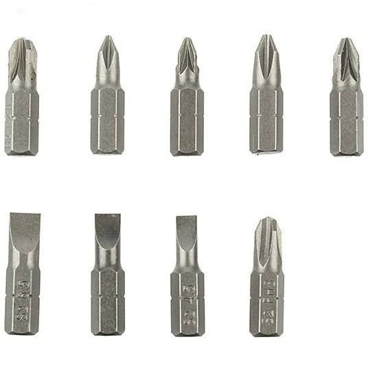 - دارای ۳ پیچگوشتی چهارسوی خاردار در سایزهای: PZ۱ , PZ۲ , PZ۳ - دارای ۳ پیچگوشتی چهارسو در سایزهای: PH۱ , PH۲ , PH۳ - دارای ۳ پیچگوشتی دوسو در سایزهای: ۴.۵ و ۵.۵ و ۶.۵ میلیمتر - دارای یک اضافهشوندهی طول ۶ سانتیمتری