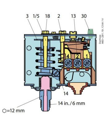 این پرشر سوئیچ جهت کنترل فشار پایین (Low pressure) سیستم استفاده می گردد.