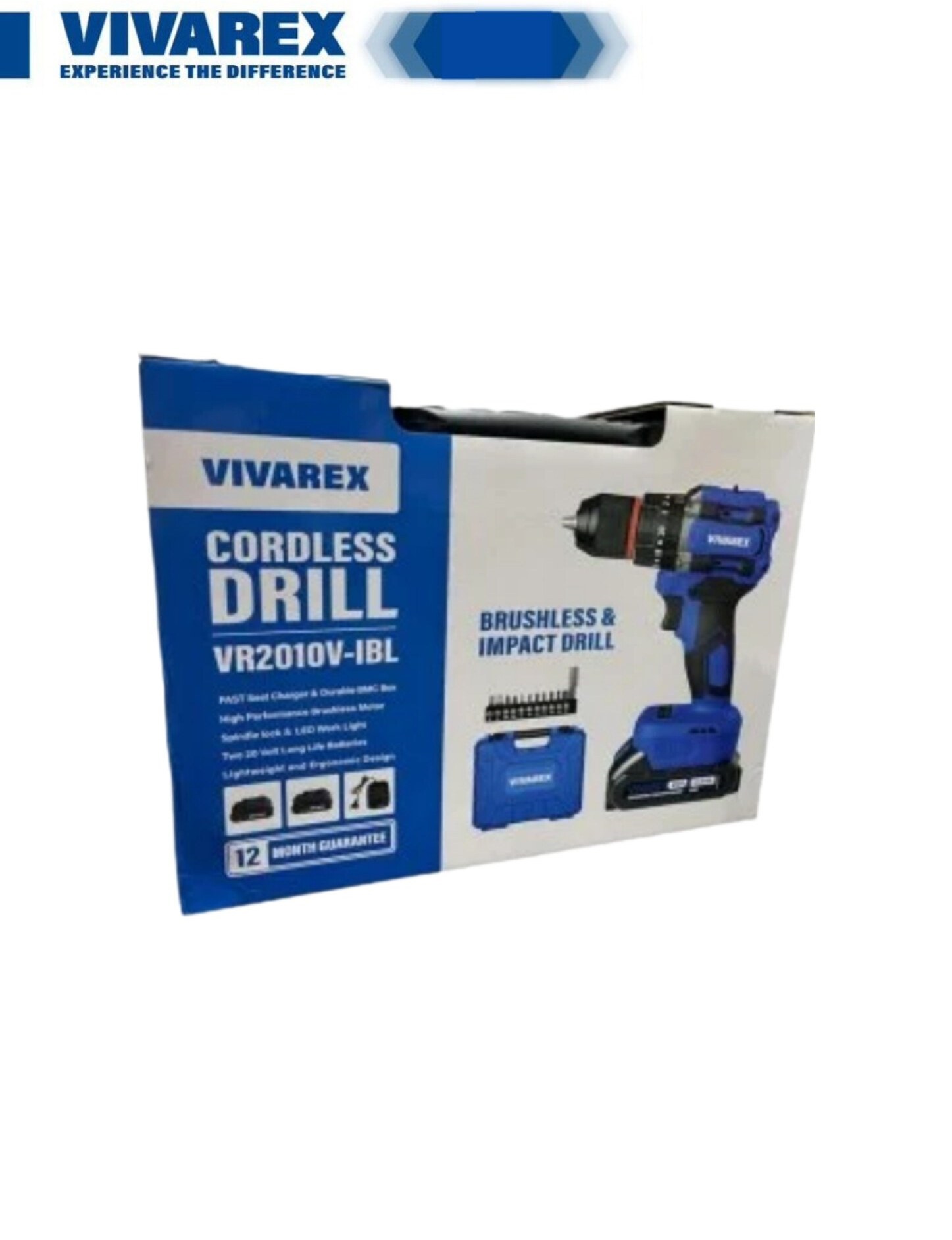 دریل شارژی ویوارکس مدل VR2010V-IBL موتور براشلس ۲۰ ولت با دو باتری