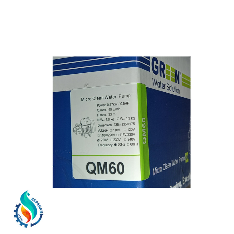 پمپ آب نیم اسب محیطی گرین مدل QM 60G: ایدهآل برای مصارف خانگی و صنعتی کوچک