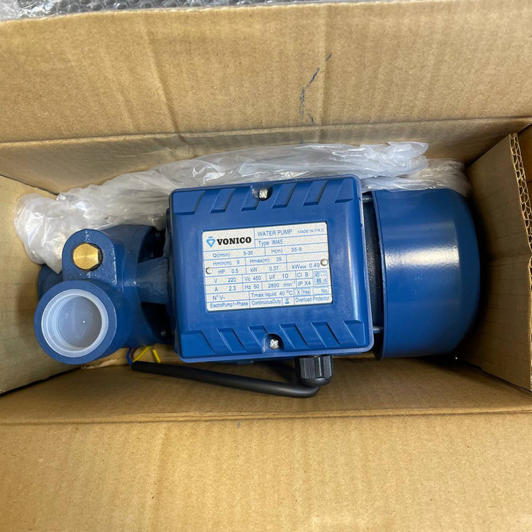 پمپ اب 0.5 اسب ونیکو مدل IM45 دارای سیم پیچ مس و شافت استیل بدنه المینیوم و پروانه باکالیت می باشد این پمپ مناسب تقویت فشار اب برای 1 یا 2 طبقه می باشد که از نظر قیمتی بسیار مناسب است و کیفیت قابل قبولی دارد و به علت قیمت مناسب جزو کالاهای پر فروش به حساب می اید
