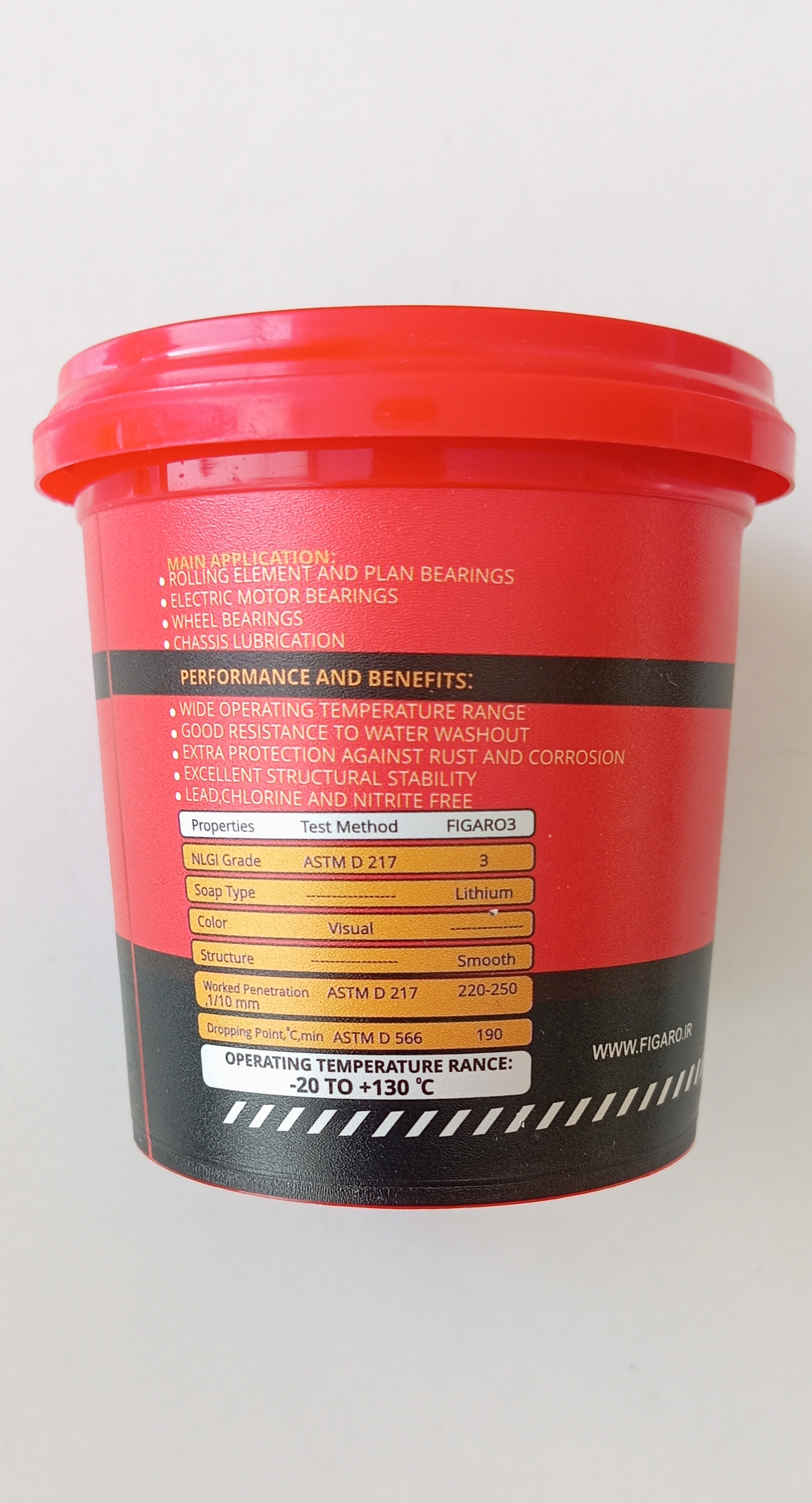 گریس لیتیوم فیگارو یک روانکار چند منظوره برای تمامی صنایع می باشد. پایداری مکانیکی طول عمر بالا و مقاومت خوب در برابر آب، از جمله خــواص این گریس است. همچنین این محصول قابلیت کارکرد را دارا می باشد. این گریس با نشان استاندارد ملی بر پایه روغن معدنی با کیفیت و غلیظ کننده صابون تولید شده است و دارای افزودنی های ضد سایش ضدخورندگی و آنتی اکسیدان است