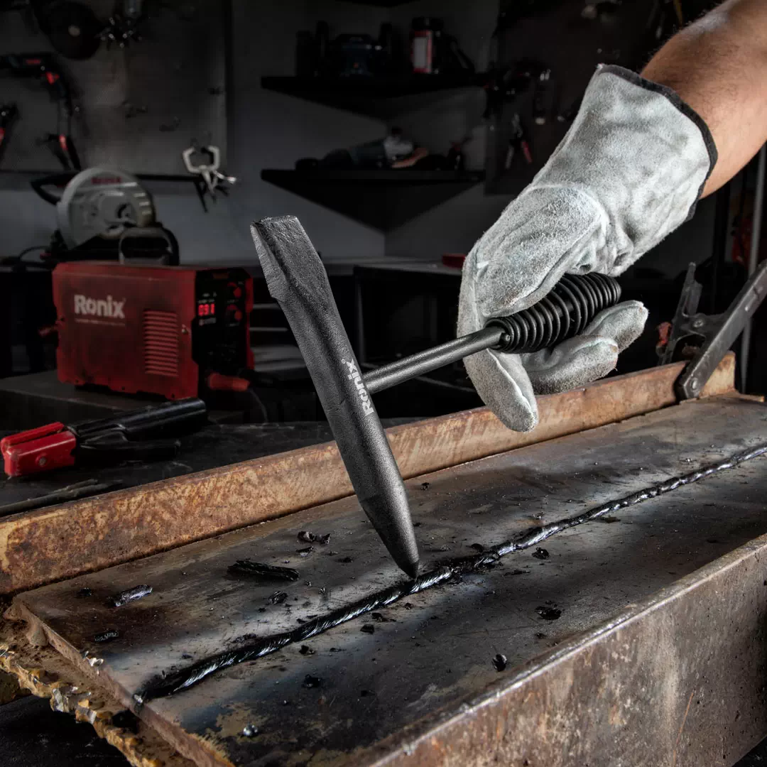چکش جوشکاری رونیکس مدل RH-4753 ابزاری تخصصی و مقاوم است که برای جوشکاری و تراشکاری مانند برداشتن جوش و پوسته ساخته شده است. این چکش ۵۶۰ گرمی از فولاد مقاوم ساخته شده و در فرآیند فورج (آهنگری) دقیق تولید میشود تا بیشترین استحکام و دوام را در شرایط کاری سخت داشته باشد. دسته فنری مارپیچ آن لرزش ناشی از ضربه را بهخوبی کنترل میکند و مانع انتقال شوک به دست کاربر میشود.
