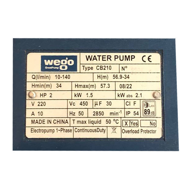 پمپ آب ویگو تک فاز با خروجی و ورودی 1 اینچ با قدرت 2 اسب بخار که برای افزایش فشار آب و سیال تمیز مورد استفاده قرار میگیرد.که نسبت به قدرت آن میتوان در مصرف مسکونی تا 16 واحد از آن اسفاده کرد که فشار آب مطلوبی را داشته باشید.از لحاظ لوازم یدکی نیز تمامی لوازم پنتاکسی میباشد و در بازار موجود است. این مدل پمپ آب برای واحدهایی با تعداد بالا و یا محوطه ایی بزرگ مورد استفاده قرار میگیرد. که با توان 2 اسب معادل 1/5 کیلووات و خازن 30 میکروفاراد کار میکند.