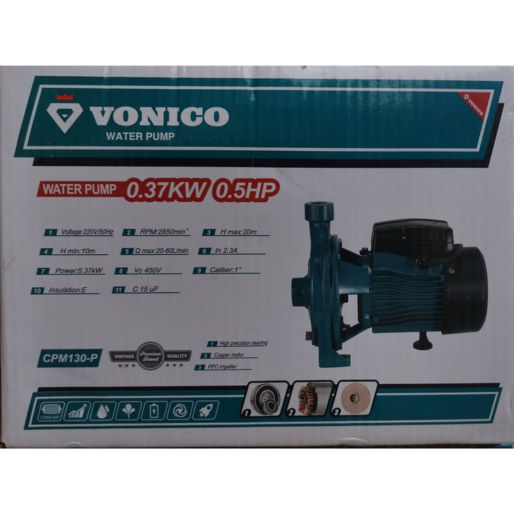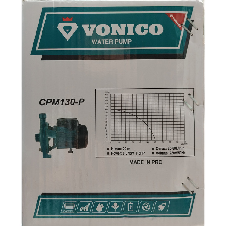 پمپ نیم اسب بشقابی ونیکو مدل CPM130-P ، دارای توان نیم اسب بخار،20 متر هد و 90 لیتر در دقیقه دبی است و کاربرد آن در سیستم های آبرسانی خانگی، انتقال سیالات غیر اسیدی شبیه به آب، تامین سیال برج خنک کن و سیستم های آبیاری، کشاورزی و باغبانی است. از مهم ترین ویژگی های این پمپ ابعاد کوچک، تامین فشار بالا، نصب راحت و تعمیر و نگهداری آسان می باشد.