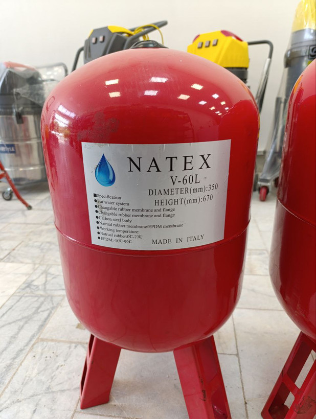 منبع انبساط یا مخزن تحت فشار 60 لیتری از برند ایتالیایی NATEX میباشد و با کاهش تعداد روشن و خاموش شدن پمپ در صرفه جویی مصرف برق نقش چشمگیری دارد. این منبع طول عمر و کیفیت بالا دارد. نوع بدنه منبع انبساط به گونه ای طراحی شده که مقاومت به زنگ زدگی و نشتی آب دارد و بدنه فولاد ضد زنگ میباشد، جنس مقاومت بالا در برابر فشار ایجاد شده در مخزن از دیگر خصوصیات این منبع میباشد که با قیمت مناسب و مواد اولیه مرغوب به کار رفته است. اجزاء به کار رفته در منبع شامل بدنه فولادی، تیوپ فلنج و والف میباشد. از دیگر ویژگی های منبع واتس تحمل فشار حداکثر 10 تا 16 بار و قطر لوله ورودی 1 اینچ میباشد و مناسب برای استفاده در منازل مسکونی میباشد.