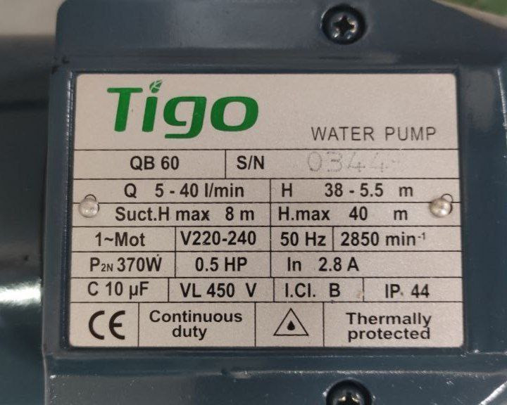 الکترو پمپ آب نیم اسب تمام مس تیگو QB60