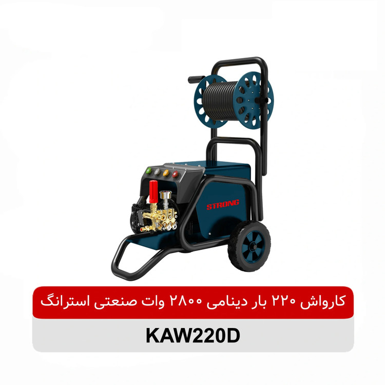 --------------------------------------کارواش 220 بار دینامی استرانگ مدل KAW220D دارای قدرت موتوری برابر 2800 وات و سیم پیچ تمام مسی میباشد. این کارواش صنعتی دارای 4 عدد نازل برای حالات مختلف پاشش و فیلتر ورودی آب جهت جلوگیری از ورود رسوبات و آشغال ها به داخل پمپ میباشد. کارواش های صنعتی ابزاری قدرتمند و تخصصی برای شستشوی سطوح بزرگ، تجهیزات سنگین، و محیط های صنعتی هستند. این دستگاهها با استفاده از فشار بالای آب و گاهی مواد شوینده مخصوص، به تمیز کردن عمیق و کارآمد محیط های صنعتی کمک میکنند.