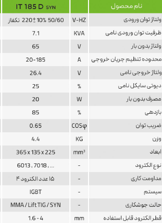 دستگاه جوش الکترود IT 185 D (تکفاز)