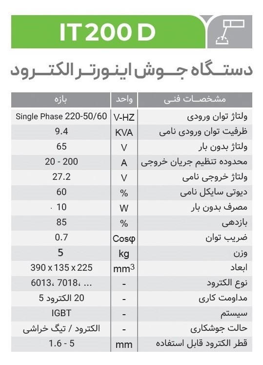 IT200 D دستگاه جوش اینورتر الکترود(تکفاز)