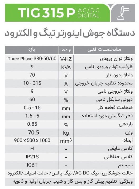 دستگاه اینورتر جوشکاری آرگون پالسی ایران ترانس آبخنک TIG 315 P AC/DC DIGITAL WATER COOL