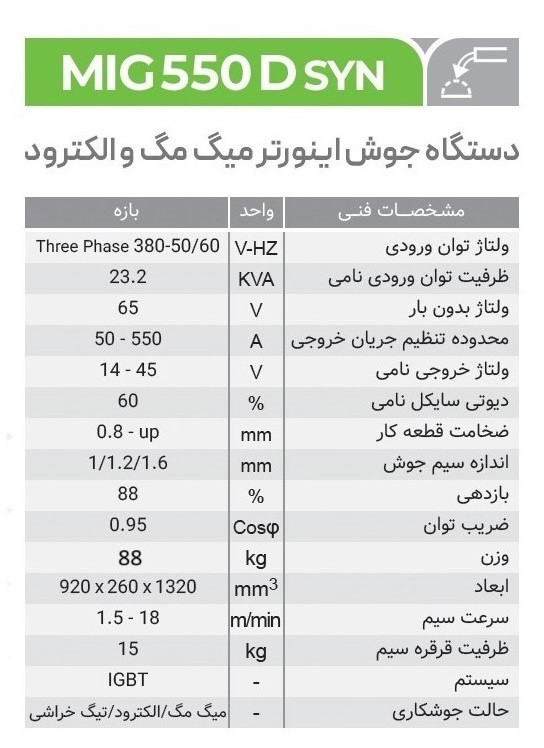 دستگاه جوش CO2 میگ 550 آمپر ایران ترانس مدل MIG 550D ( هواخنک ) ایران ترانس
