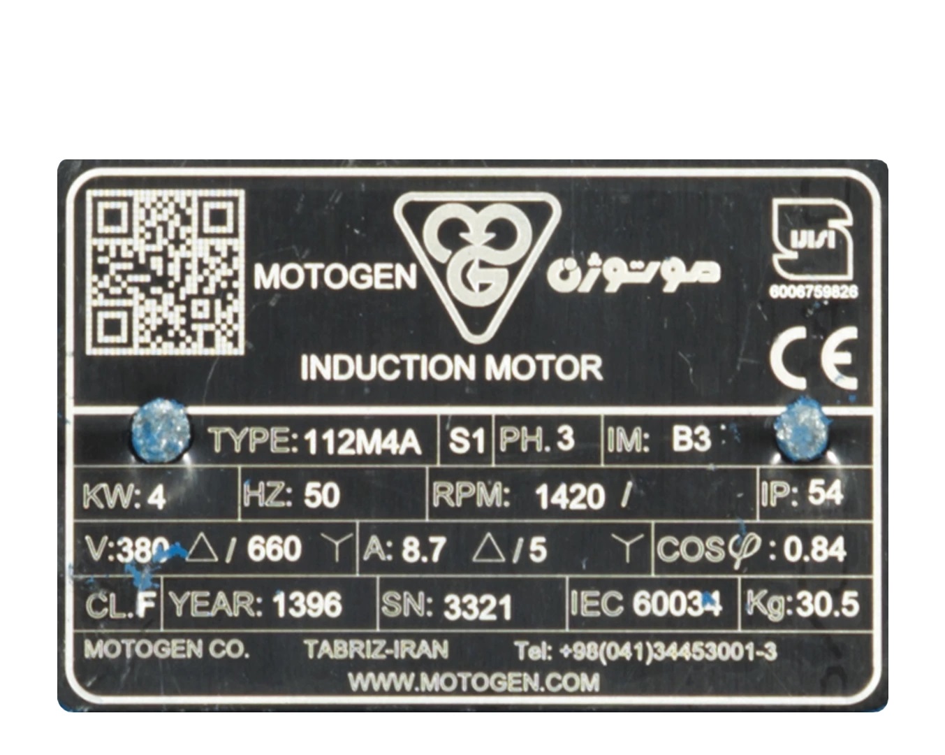 الکتروموتور موتوژن سه فاز 5.5 اسب 4 کیلووات پوسته آلومینیوم 1500 دور