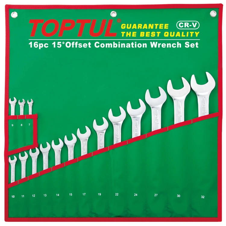 تعداد ست 16 عددی جنس کروم-وانادیوم با روکش براق استاندارد متریک شماره آچار 7 , 8 , 9 , 10 , 11 , 12 , 13 , 14 , 15 , 17 , 19 , 22 , 24 , 27 , 30 , 32