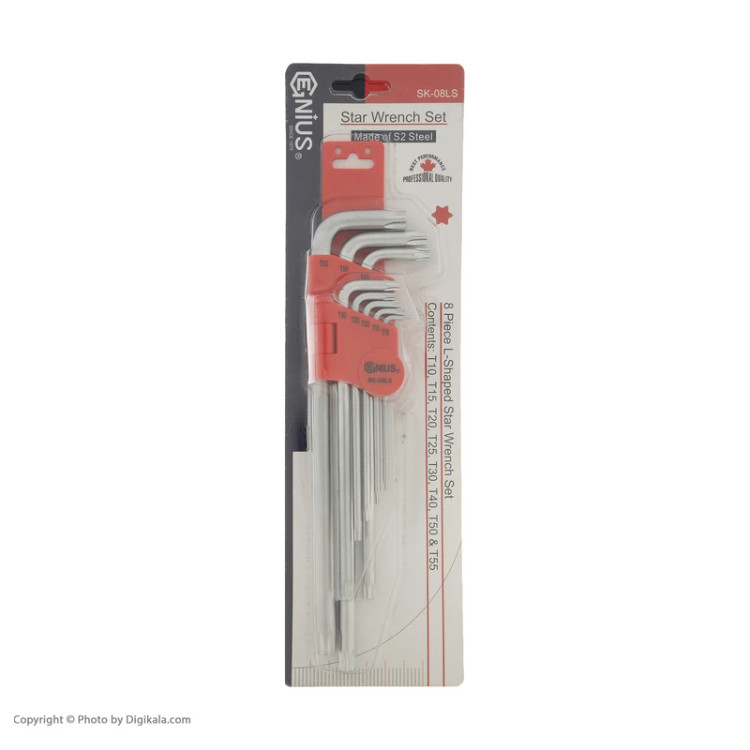 ست 8 عددی آچار آلن ستاره ای رو کارتی بلند مدل SK-08LS جنیوس GENIUS