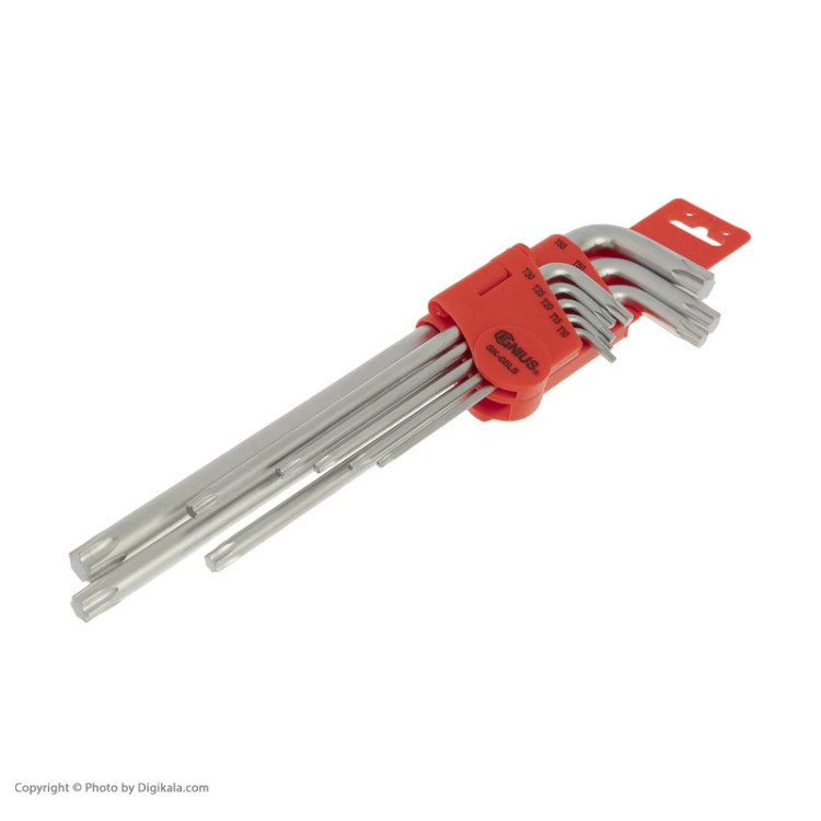 آچار آلن از آچارهای پرکاربرد برای انجام انواع کار است و یکی از مهمترین ابزارهاست. این آچار امکان لیز خوردن خراب شدن دندانههای پیچ را کمتر کرده و فشار کمی به آن وارد میکند. آچار داخل پیچ میشود کار کردن با آن راحتتر است. مجموعه 8 عددی آچار آلن جنیوس تولز مدل SK-08LS از استیل ساختهشده و 350 گرم وزن دارد. نوع دسته این آچار استاندارد بوده و این مزیت کار را برای شما راحت میکند. آچار آلن وسیلهای است L مانند با مقطع ششضلعی برای شل و سفت کردن پیچهای آلن و در انواع و اقسام سایزهای گوناگون و در شکلهای مختلف و بستهبندیهای متنوعی یافت میشود. شماره این آچارها T-10 , T-15 T-20 , T-25 , T-30 , T-40 , T-52 , T-55 است. که در زمان انتخاب خرید به آنها حتماً توجه کنید.